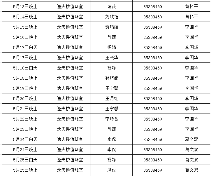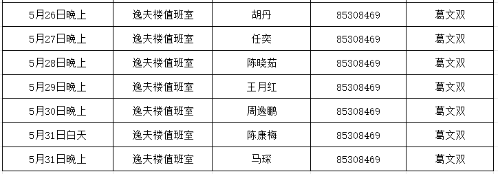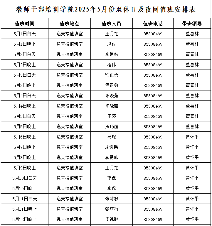 威廉希尔中国官网2025年5月份双休日及夜间值班安排表