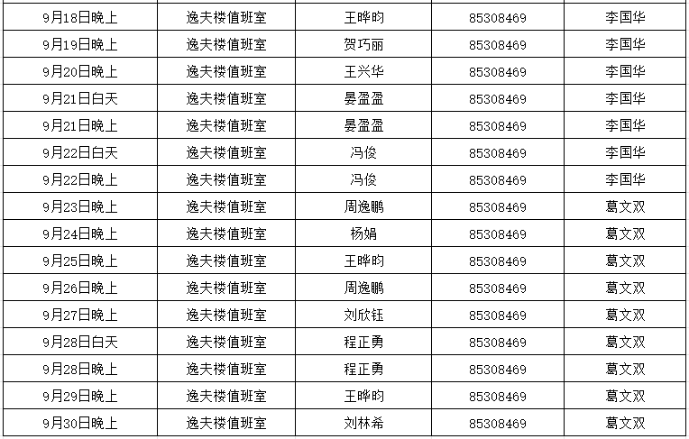 4.值班时间:上午:8:30—12:00 下午:14:30—17:30 晚上:17:30—21:30。